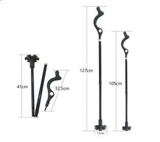 Telescopic Stick Stool Folding Handle Walking Stick (Option: Black-Folding-4pcs)