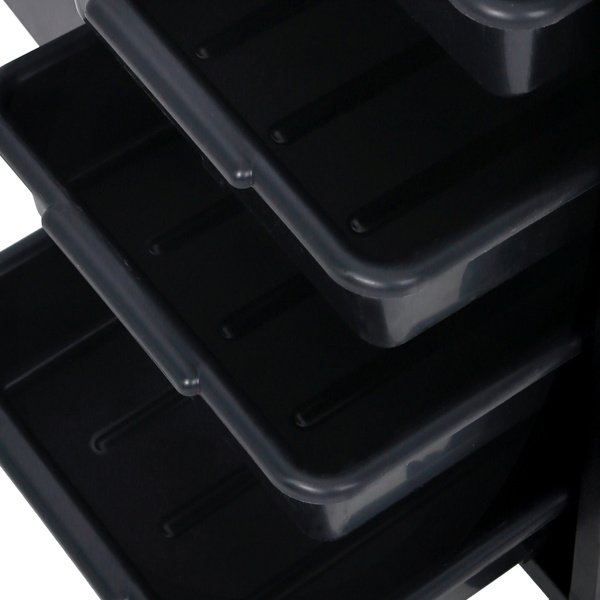 We designed a very space-saving extra tool side storage tray on the side of the trolley, which can be easily slid in and out, and does not take up space when not in use.